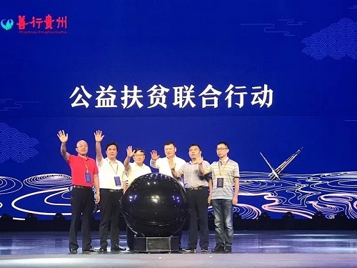 盛典活动现场,贵州省民政厅党组成员、副厅长刘玉海,黔东南州州委常委、副州长郑秀全,贵商总会常务副会长、秘书长孔祥柱,北京贵州商会副会长刘学文,贵商总会理事陈海彬,贵州大健康产业联合会常务会长李修松上台共同启动水晶球,发起“公益扶贫联合行动”,希望通过推介交流、联合发力,聚集更多资源向贫困地区倾斜,创新贵州公益扶贫新实践、促进贵州慈善公益新发展。